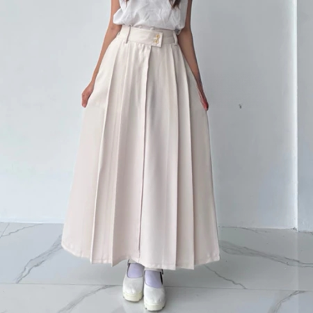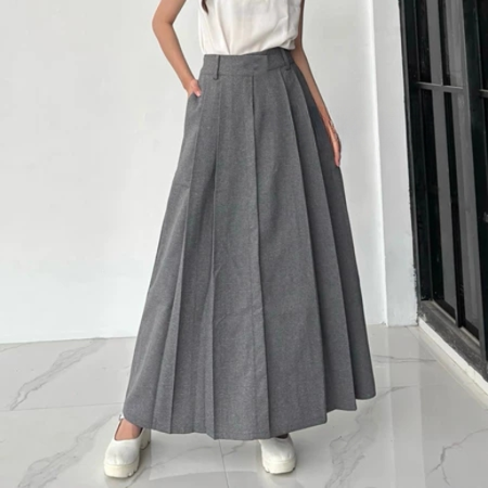 Tampil anggun dan effortless dengan Alena Korean Skirt, rok panjang model A-Line dengan detail rempel yang memberikan siluet cantik dan flowy saat dipakai. Terinspirasi dari style Korean fashion yang simpel namun tetap elegan, rok ini cocok untuk berbagai aktivitas, mulai dari hangout, kerja, kuliah, hingga acara semi formal.